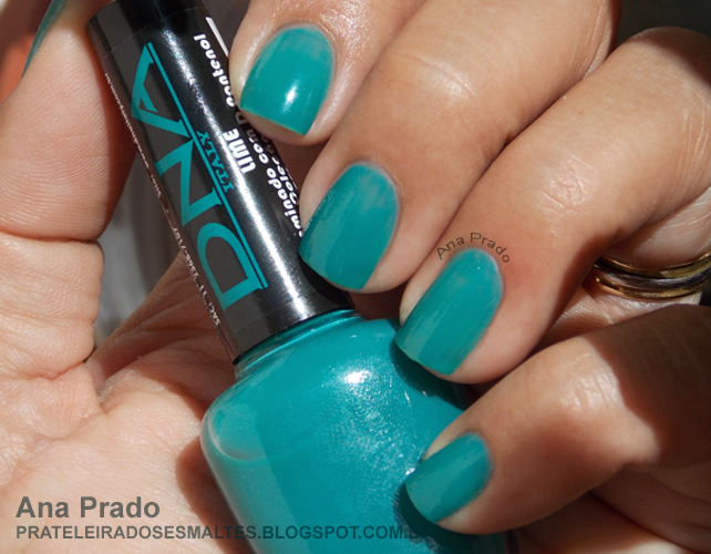 ...lançada para o verão de 2013 composta por 7 esmaltes com efeito jelly ( ou seja aguados ), Lime se destaca por ser o mais bonito da turma, é um azul esverdeado difícil de fotografar, hora parece azul, hora parece verde. Essa cor também é conhecida como Teal (pode ser "tio" também se isso ajudar na pronuncia) apesar do esmalte ser jelly, duas camadas ficaram perfeitas nas cotocas.